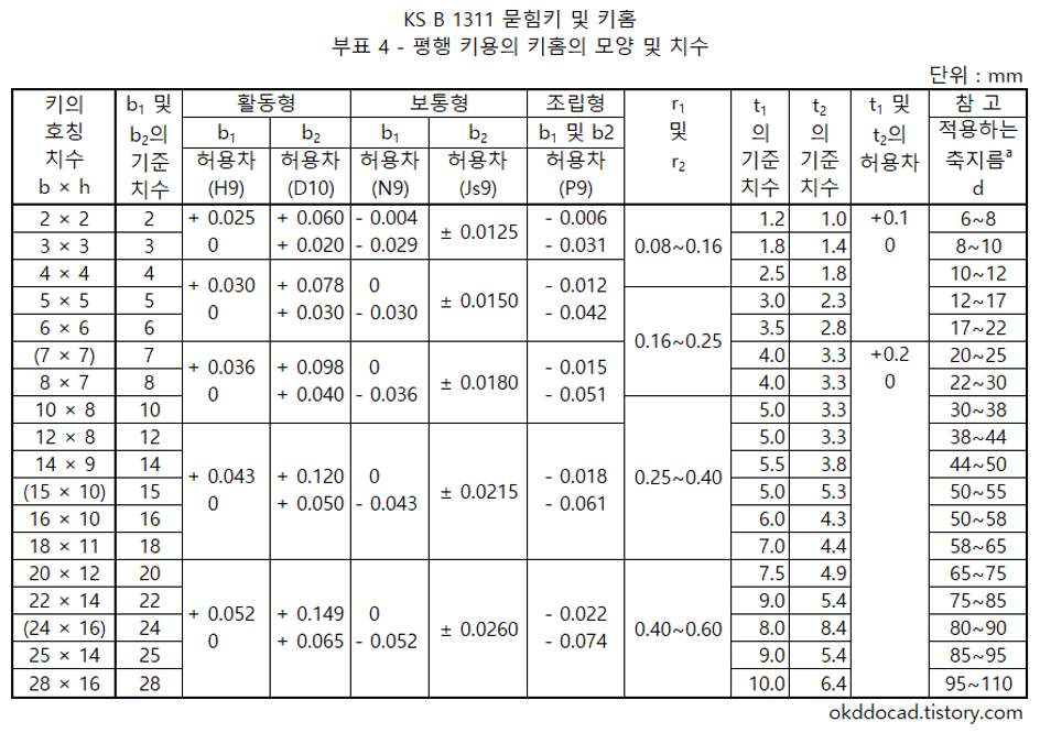 [KS 규격 적용] 평행 키 & 반달 키 (키 홈) KS B 1311