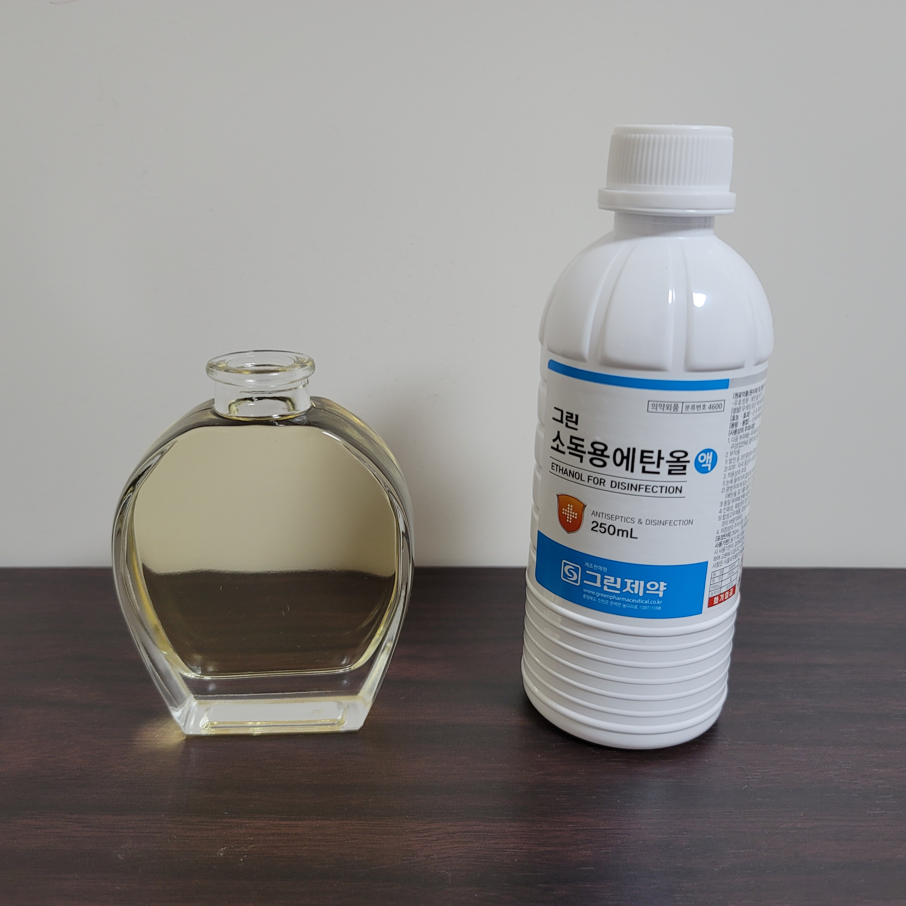 디퓨저 향이 오래 지속되려면 에탄올보다는 디퓨저 베이스로 만드는게 좋다고 해요. 하지만 저는 빨리 그냥 만들어보고 싶어서 에탄올로 준비했습니다. 집 앞 약국에서 1,500원에 팔더군요.