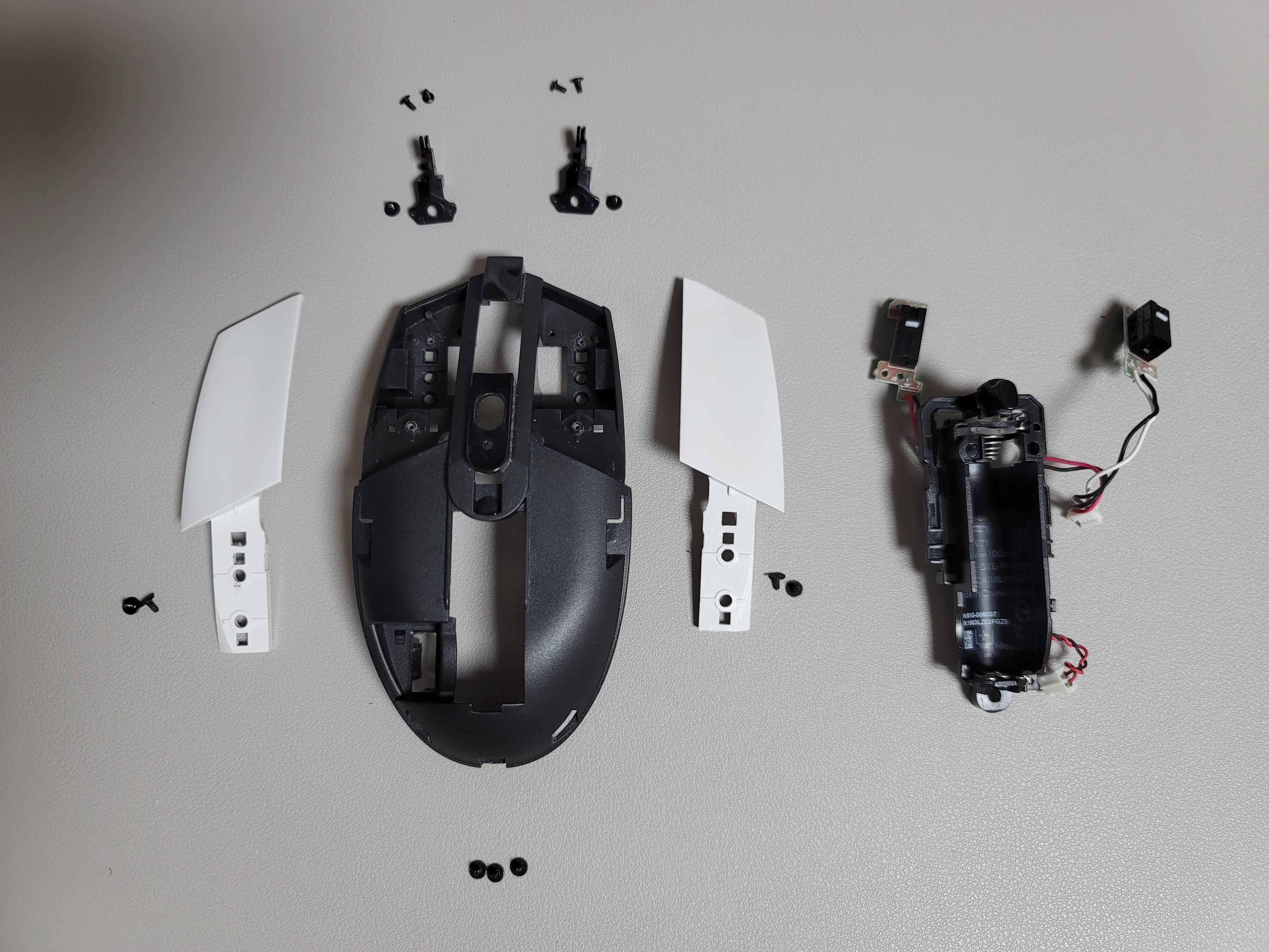 저는 좌/우클릭 스위치만 교체했지만, 마우스 좌측 버튼 스위치 2개도 교체하실 분들은 하부에 있는 PCB 주변을 분해하셔서 교체하시면 됩니다. 이 부분은 구조가 간단하니 생략하겠습니다.